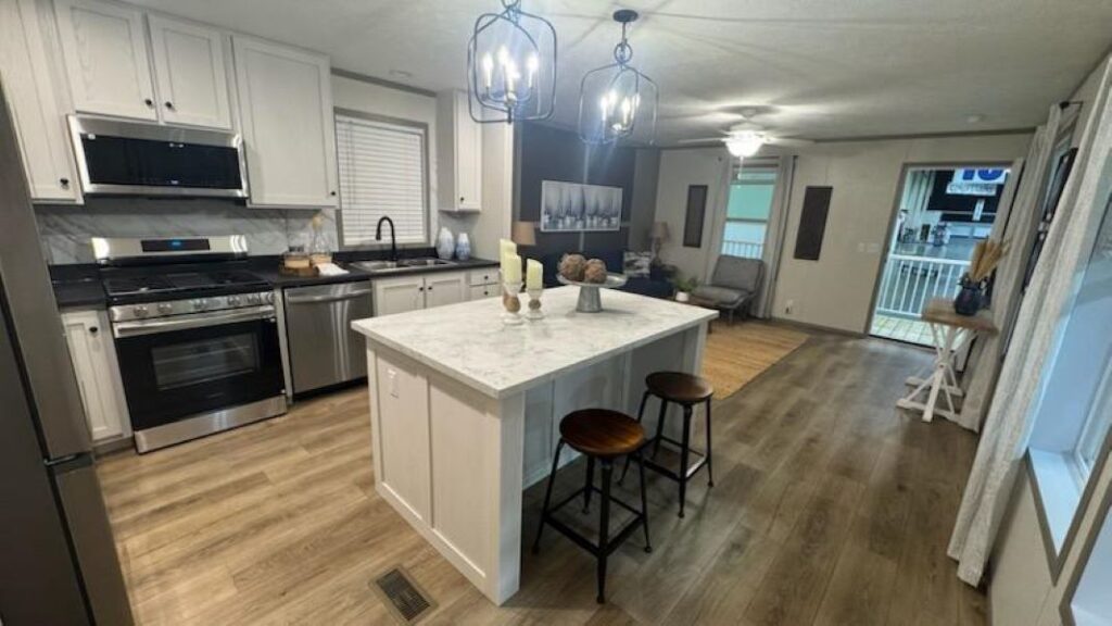 Picture yourself relaxing and unwinding in this 2 bedroom, 2 bath manufactured home on a beautiful lake lot. Features include an open living area and a covered front porch for enjoying the views. Ideal as a weekend retreat or full-time residence – affordable living at its best!